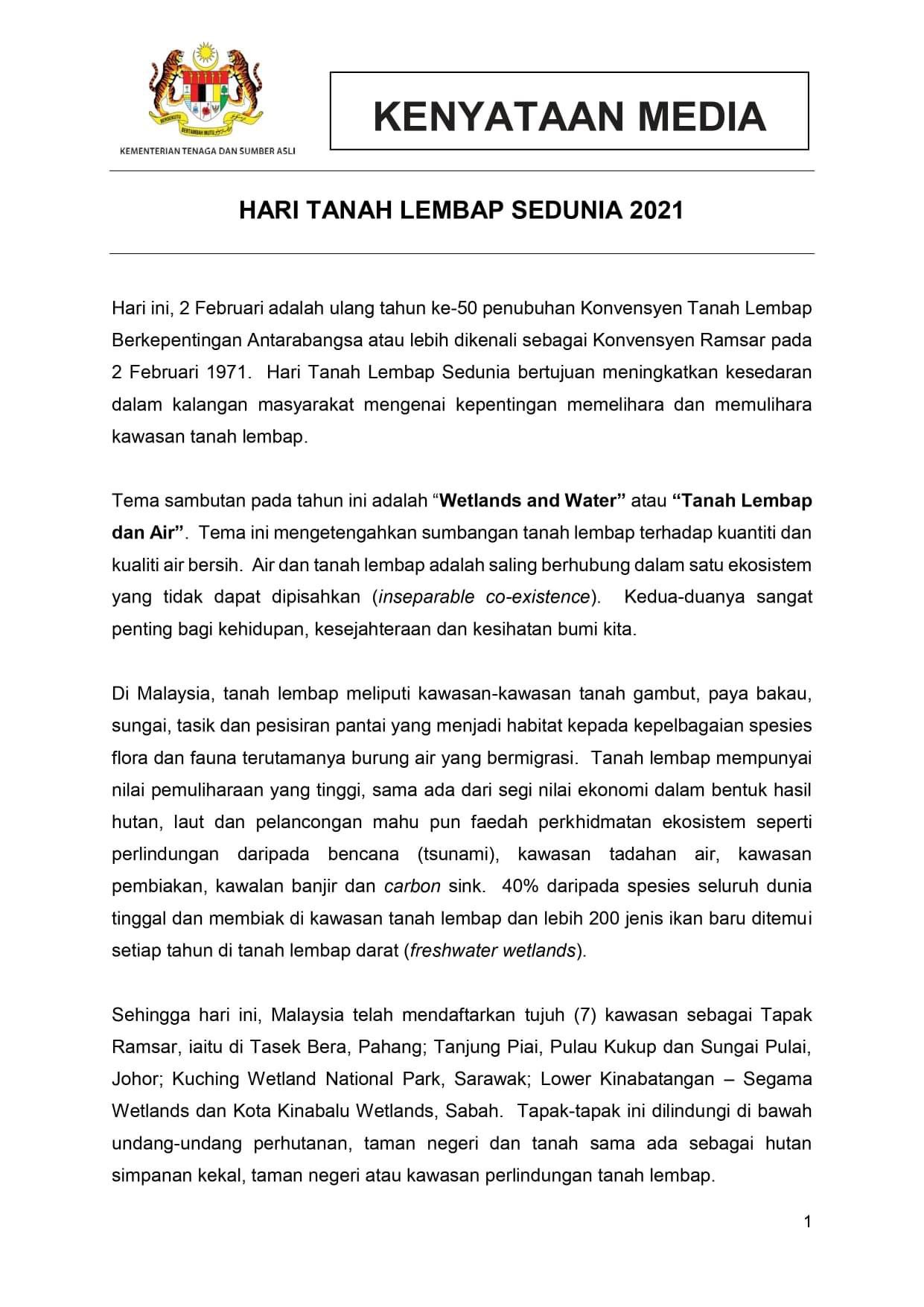 Bernama Radio On Twitter Kenyataan Media Menteri Tenaga Dan Sumber Asli Mengenai Hari Tanah Lembap Sedunia 2021 Https T Co Xsz5uwxury Twitter
